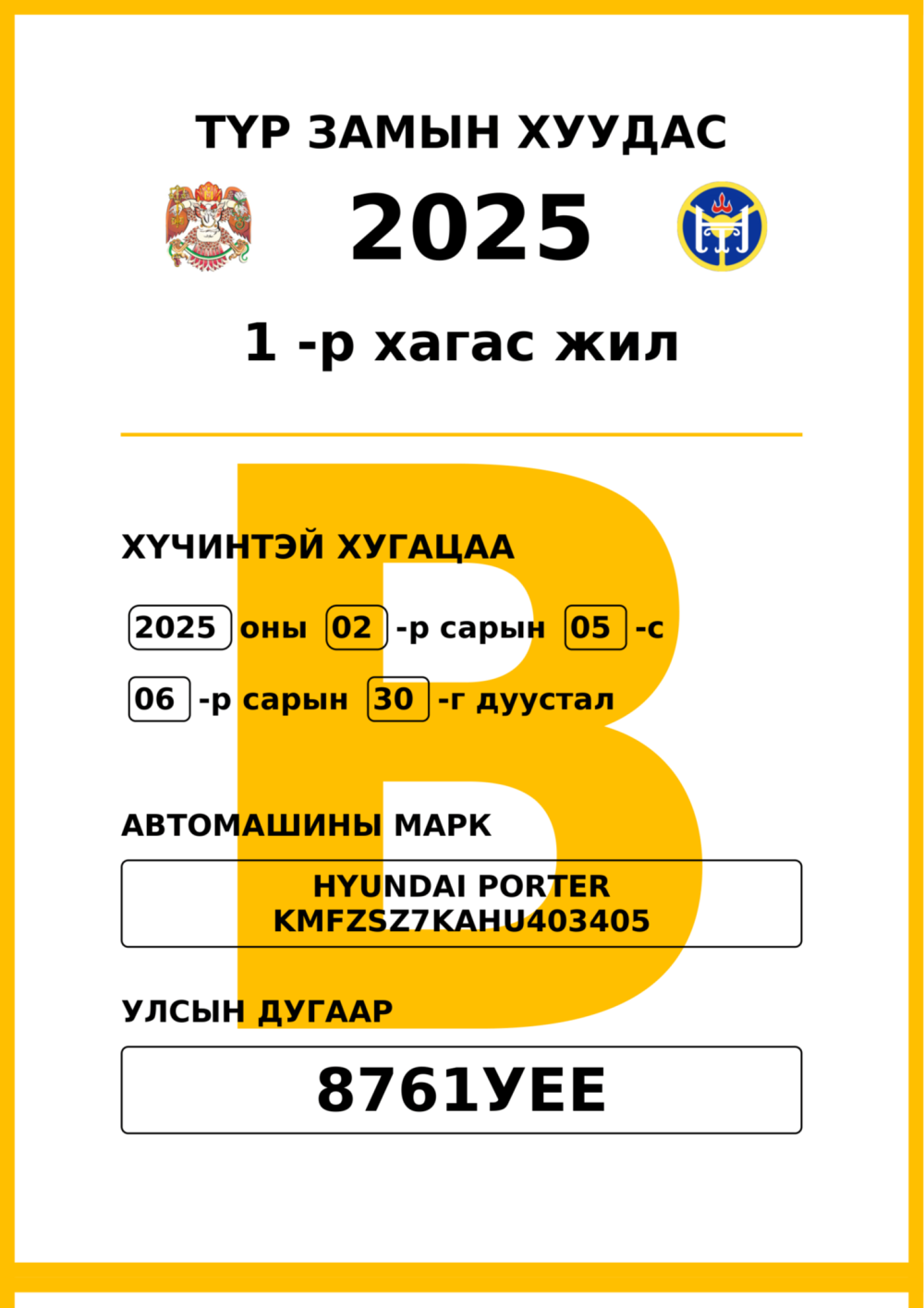 ТҮР ЗАМЫН ХУУДАС В